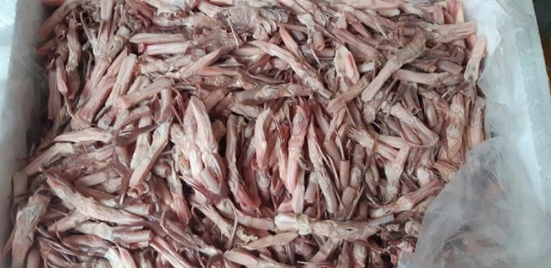 Tại thời điểm kiểm tra, lực lượng chức năng phát hiện nhiều thùng xốp chứa hàng tấn lưỡi vịt, trứng non và vú heo đông lạnh có tem nhãn Trung Quốc.