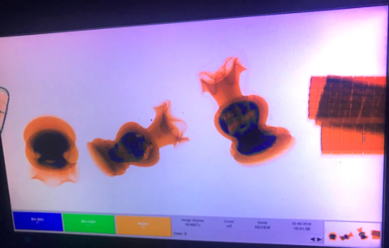 Máy soi của Chi cục Hải quan Cửa khẩu quốc tế Cầu Treo phát hiện bên trong cặp lục bình chứa vật thể "lạ".