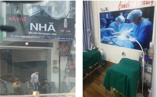 Tầng trệt bán cà phê, lấu 1 là phòng phẫu thuật thẩm mỹ trá hình. Ảnh: SỞ Y TẾ TP.HCM