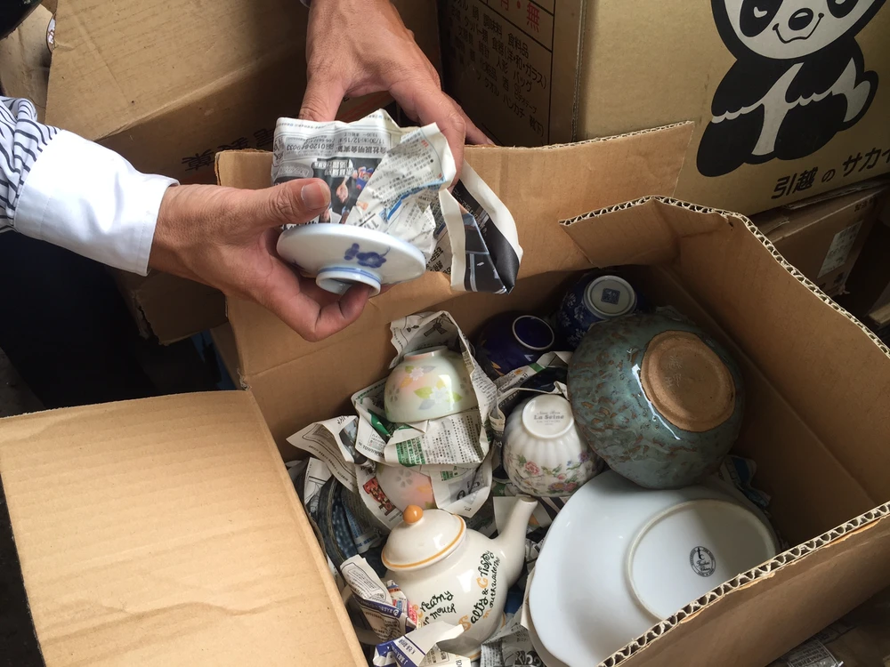 Nhiều mặt hàng ly, cốc, dĩa đã qua sử dụng của Nhật thải ra được gom về