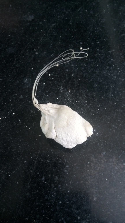 Các bác sĩ đã tiến hành phẫu thuật và lấy viên sỏi đó ra. Điều lạ là viên sỏi này lại được bọc quanh một cuộn cước câu cá, có kích thức 5x3 cm.