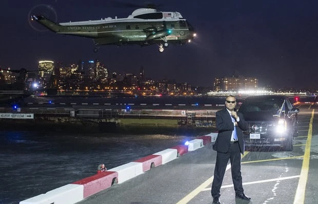 Một nhân viên mật vụ Mỹ làm nhiệm vụ khi máy bay chở cựu Tổng thống Barack Obama chuẩn bị hạ cánh xuống New York năm 2015. Ảnh: GETTY
