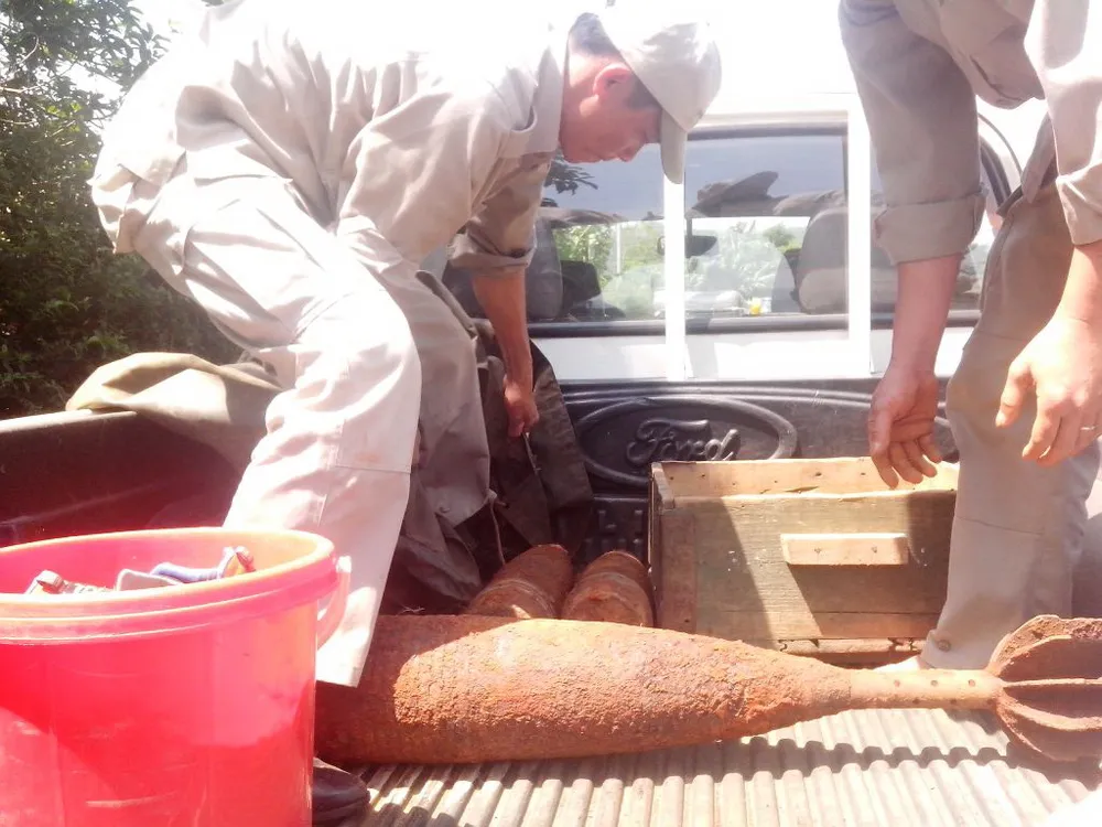 Sau khi nhận được thông tin, Đội rà phá bom mìn lưu động (thuộc tổ chức Cây Hòa bình - Peace Trees) đã có mặt tại hiện trường, tiến hành rà tìm được 5 quả đạn pháo, bao gồm: 1 quả đạn cối 160mm (nặng 38 kg ) và 4 quả đạn pháo 130mm (mỗi quả nặng 25kg). Tất cả số đạn pháo này nằm cách mặt đất khoảng 1 mét.