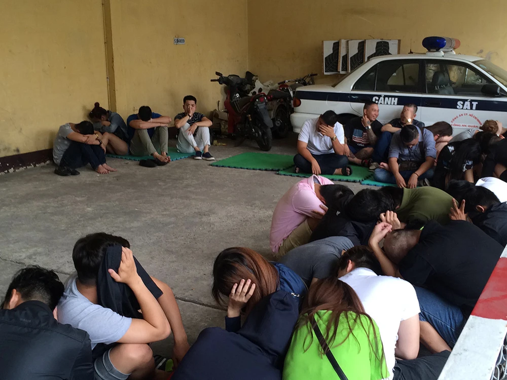 Tại các phòng, trinh sát phát hiện hàng chục nam nữ thanh niên có biểu hiện sử dụng ma túy, một số gói nghi ma túy bị phi tang nhưng bị công an phát hiện thu giữ.