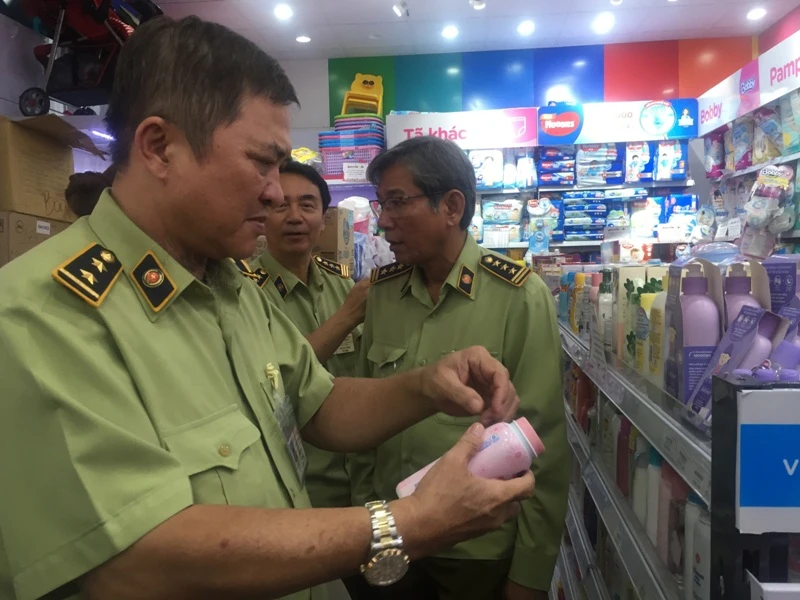 Cán bộ QLTT kiểm tra cửa hàng Con Cưng tại đường Nguyễn Thị Minh Khai, quận 3.