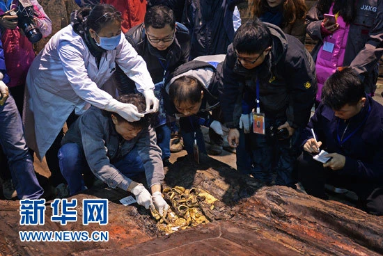 Theo Tân Hoa xã, hiện các nhà khảo cổ đang tiến hành khai quật gian chính đặt quan tài.Tại đây, họ phát hiện thêm 96 đồng xu vàng, nâng tổng số “bánh vàng” được tìm thấy tại cổ mộ 2.000 năm tuổi lên tới 285 chiếc