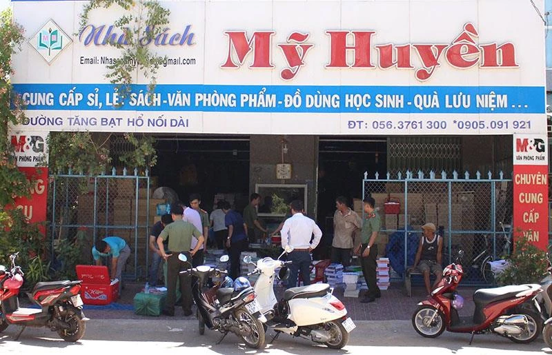 Chiều 13-6, đội liên ngành phòng chống in lậu tỉnh Bình Định gồm Thanh tra Sở TT&TT, Phòng An ninh chính trị nội bộ (PA03) Công an tỉnh làm việc với chủ nhà sách Mỹ Huyền (ở 33 Trần Hưng Đạo, thị trấn Bồng Sơn, huyện Hoài Nhơn, Bình Định) để làm rõ vụ nghi làm giả sách giáo khoa được phát hiện tại nhà sách này.