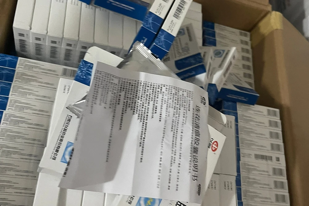 Cơ quan chức năng phát hiện số thuốc trị COVID-19 lậu và kit test không rõ nguồn gốc. Ảnh: HT