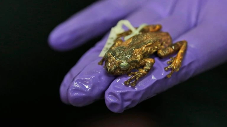Loài ếch lạ có kích thước cỡ một quả bóng golf, sống trong các hốc cây cao hơn mặt đất khoảng 6 m, giúp chúng khó bị phát hiện. Biju kể lại: “Chúng tôi nghe được cả một bản hòa nhạc vang xuống từ ngọn cây cao. Thật kỳ diệu!”