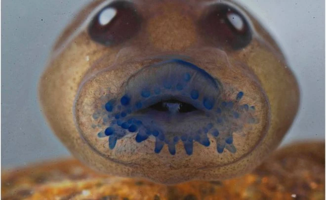 Miệng nòng nọc Frankixalus không có răng để dễ hút trứng. (Ảnh: AP)