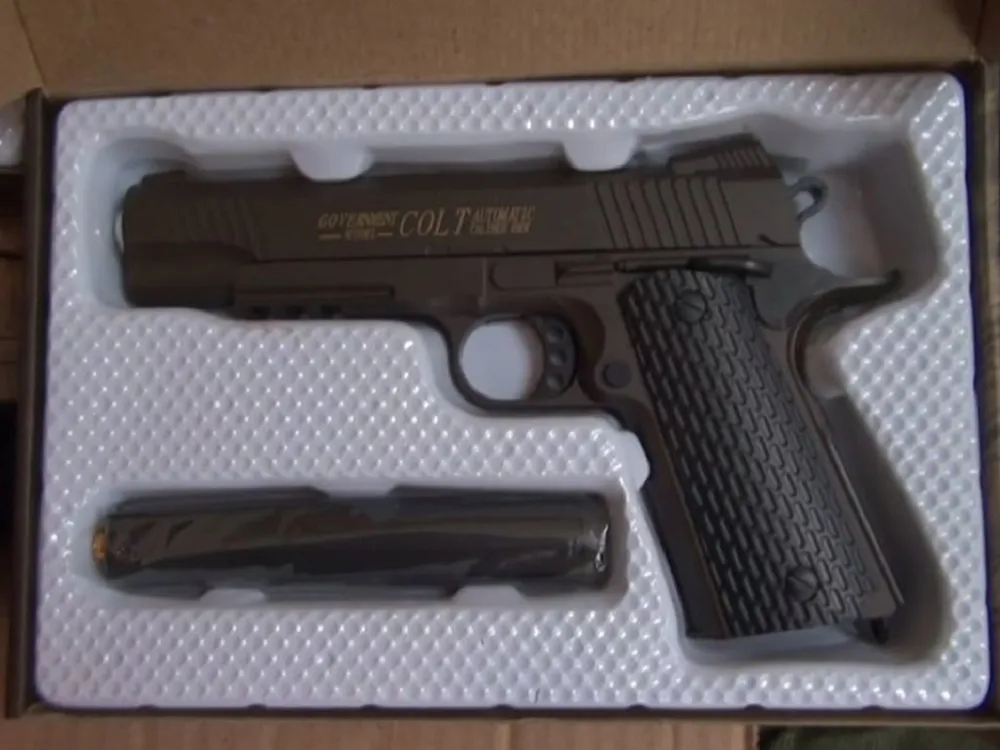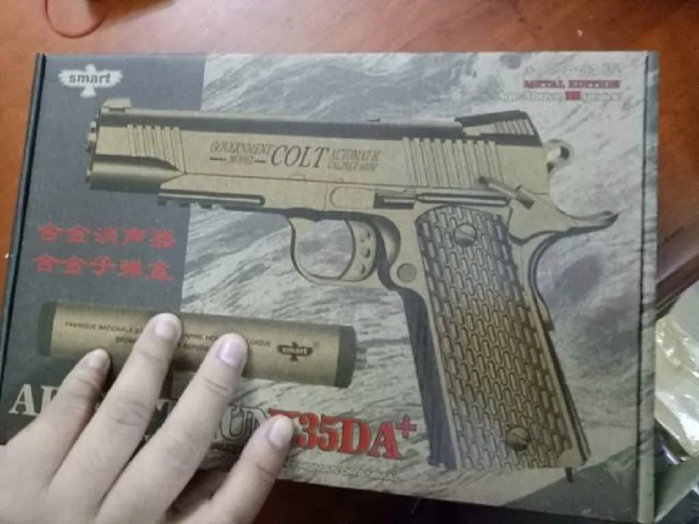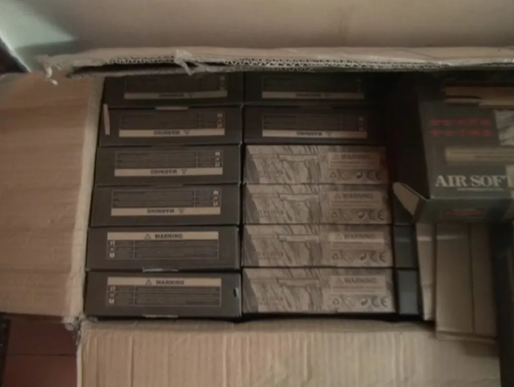 Tại thời điểm kiểm tra, cảnh sát phát hiện 108 khẩu súng ngắn nhãn hiệu Colt automatic caliber 6MM, là đồ chơi cho trẻ em. Số súng này có trọng lượng, hình thức giống như súng thật, sử dụng đạn bị và có thể gây sát thương cho người tiếp xúc.