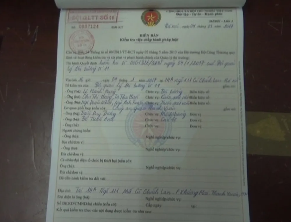 Theo đó, khoảng 16 giờ cùng ngày, Đội cảnh sát kinh tế (Công an quận Thanh Xuân) phối hợp với Đội quản lý thị trường số 11 (Tây Hồ, Hà Nội) tiến hành kiểm tra trụ sở Công ty Cổ phần thương mại và chuyển phát nhanh Việt Nam (địa chỉ tại phường Khương Mai, quận Thanh Xuân).