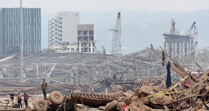 Hình ảnh đống đổ nát sau vụ nổ tại cảng Beirut (Lebanon) Ảnh: MYLOOK