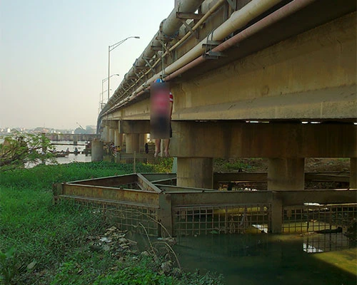 Theo lời kể của nhiều công nhân, khi họ tới công trình xây dựng cầu để làm việc thì hoảng hốt phát hện một nam thanh niên chết trong tư thế treo cổ.