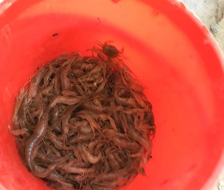Số tôm mà người dân nhặt lại được sau khi người đàn ông định vứt hết tôm, cá trong thuyền xuống sông