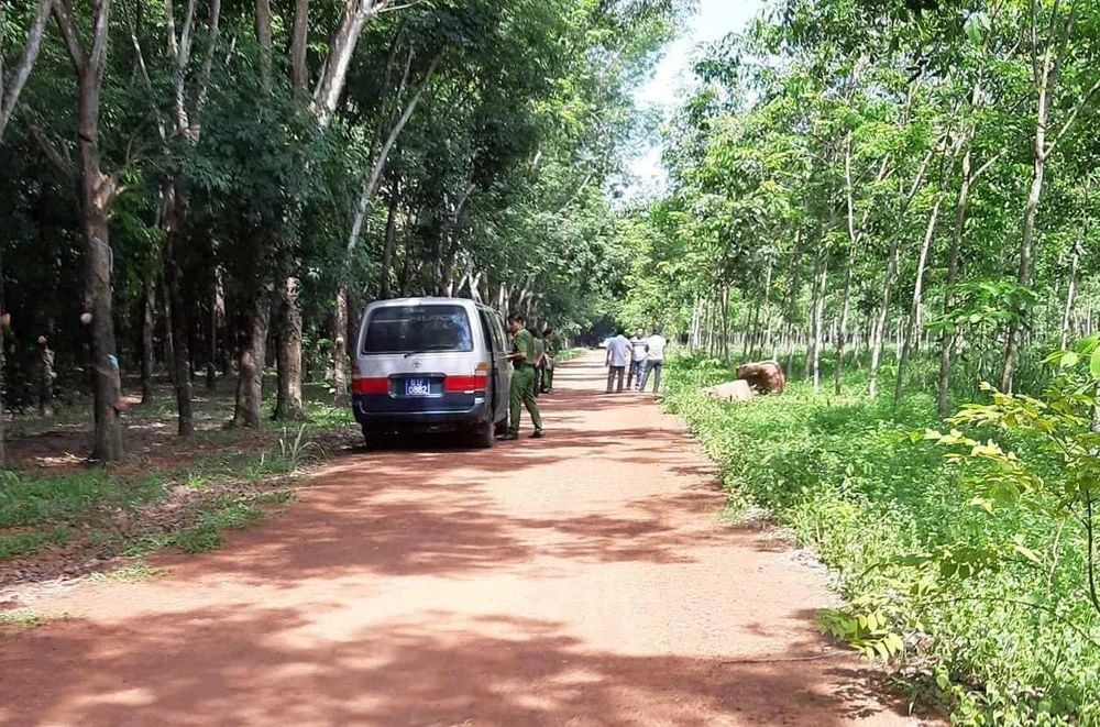 Cơ quan điều tra thu thập dấu vết ở vườn cao su gần khu vực hiện trường.