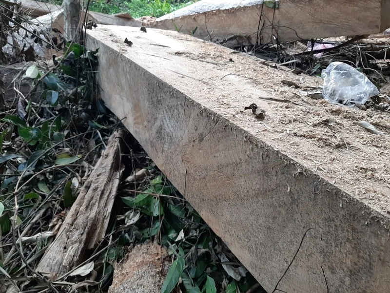 Kết quả kiểm tra tại hiện trường cho thấy khối lượng lâm sản nằm tại hiện trường là gần 21 m3 gỗ, 11 gốc cây với vết cưa xẻ đa phần thể hiện rất mới.