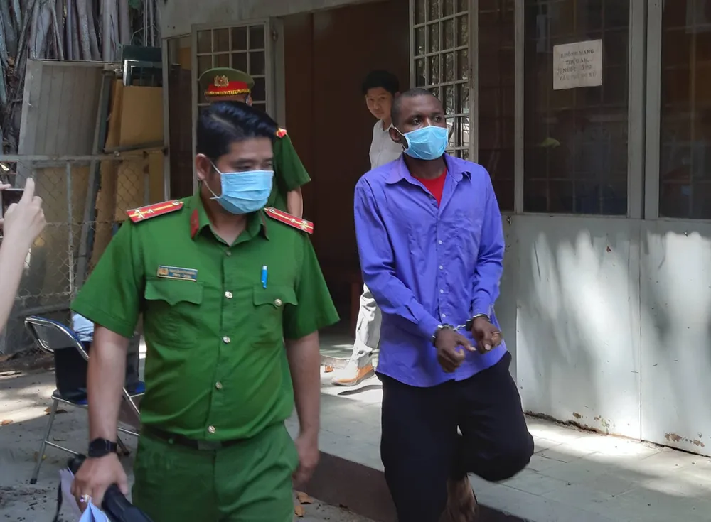 Nweke John Chukwuebuka được dẫn giải về trại giam sau phiên xử. Ảnh: HOÀNG YẾN