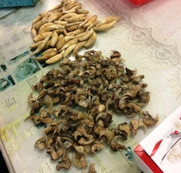 Kết quả giám định nhanh xác định nhiều khả năng đây là răng nanh và móng vuốt của báo châu Phi. Ảnh: TH.X.Đ