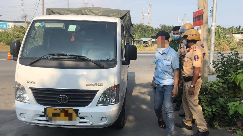 Công an huyện Nhà Bè kiểm tra và phát hiện tài xế có kết quả dương tính với các chất ma tuý. Ảnh: CM