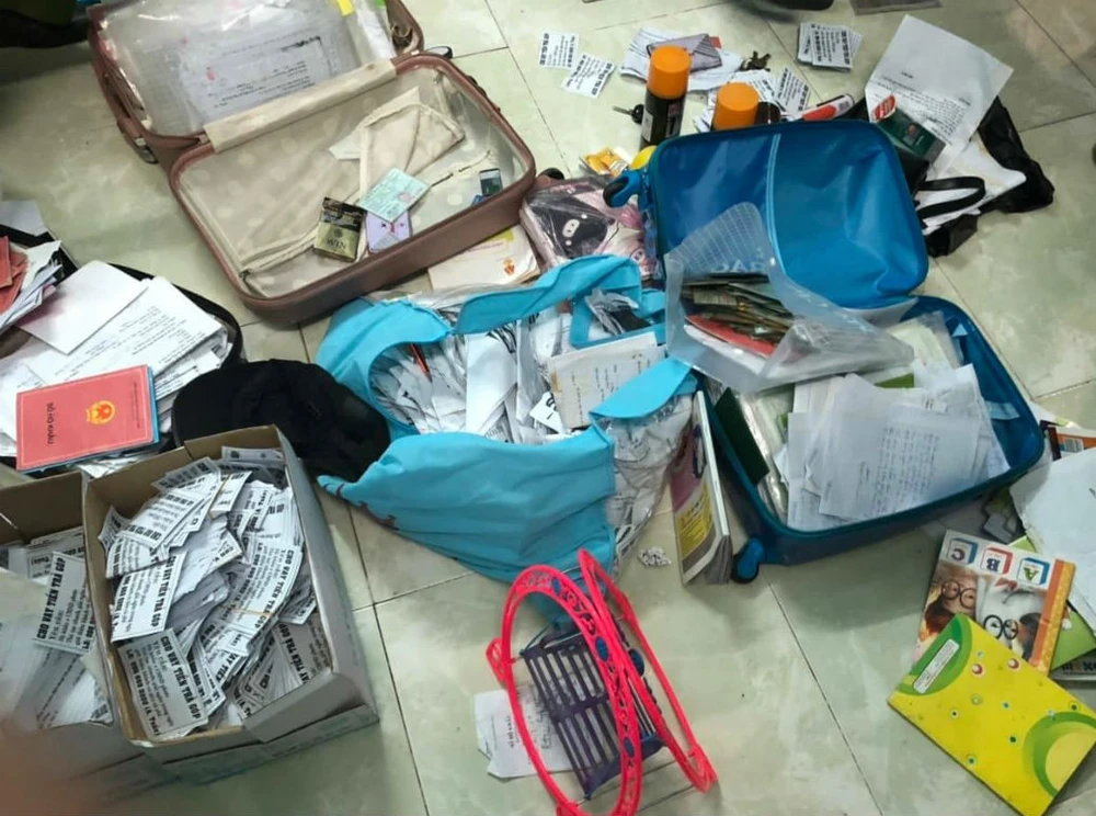 Khoảng 400 giấy chứng minh, hộ khẩu, cà vẹt xe thu giữ. Ảnh: Vũ Hội
