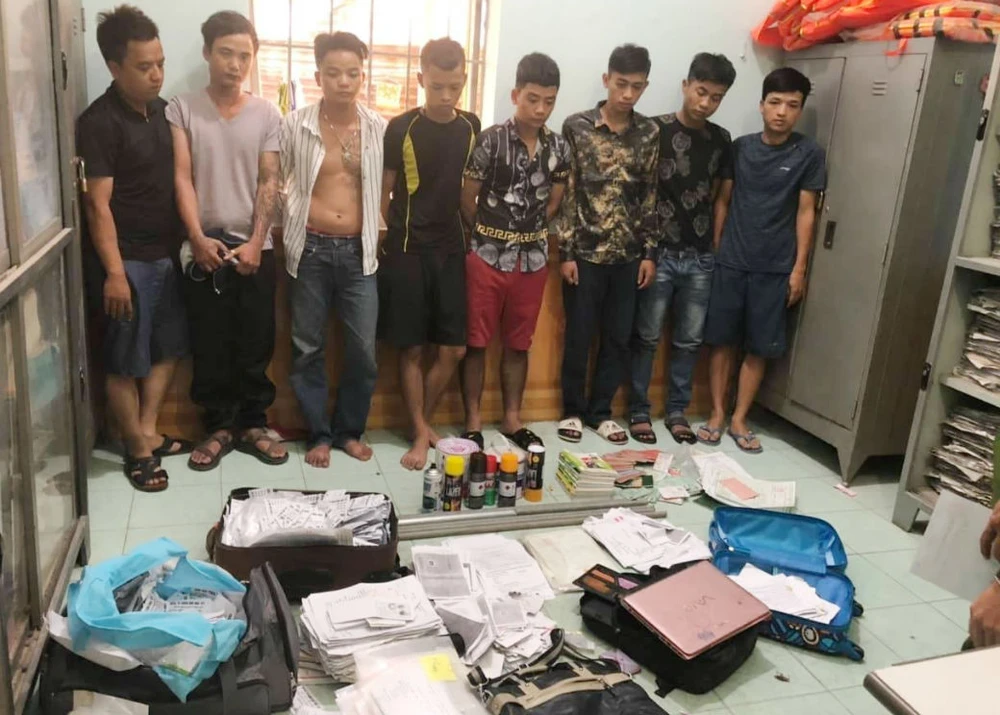 Kiểm tra trong nhà Út, lực lượng công an thu giữ thùng đựng tờ rơi ghi số điện thoại cho vay tiền, hàng trăm hợp đồng cho vay nợ, trên 400 chứng minh nhân dân, hộ khẩu của người dân thế chấp vay nợ cùng nhiều típ sắt, bình xịt hơi cay, bình xịt sơn, 7 xe máy và 1 ô tô.