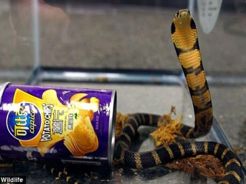 Đặc vụ hoảng hồn khi phát hiện ba con rắn hổ mang cực độc được giấu trong những lon khoai tây chiên. Ảnh: Wildlife