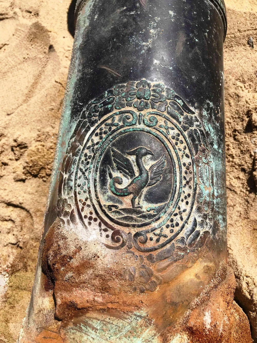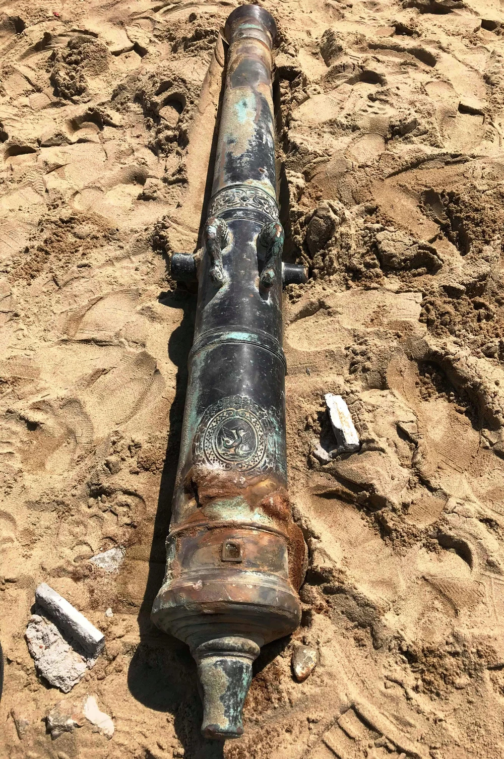 Súng thần công được phát hiện ở khu vực ven biển. Ảnh: HẢI HIẾU