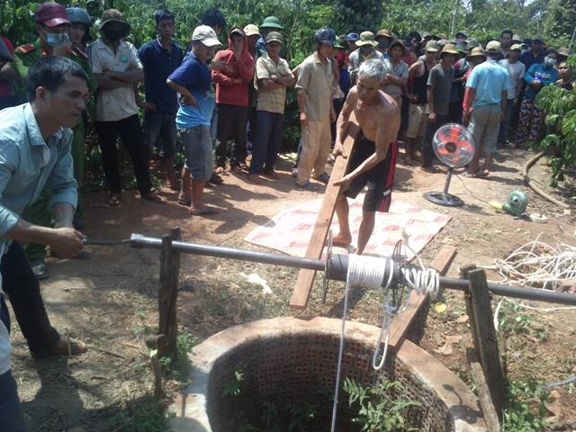 Ông Võ Đức Triều (62 tuổi, trú thôn 6, xã Ea Kpam, Cư M’gar), người trực tiếp vớt xác nạn nhân kể lại, khi xuống giếng thì phát hiện nam thanh niên chết trong tư thế đầu cắm xuống đáy giếng, một số bộ phận trên cơ thể như tai, cánh tay bị trầy xước. Ngoài xác nạn nhân, dưới đáy giếng còn phát hiện một khúc gỗ khá dài, vừa bàn tay người lớn nắm.