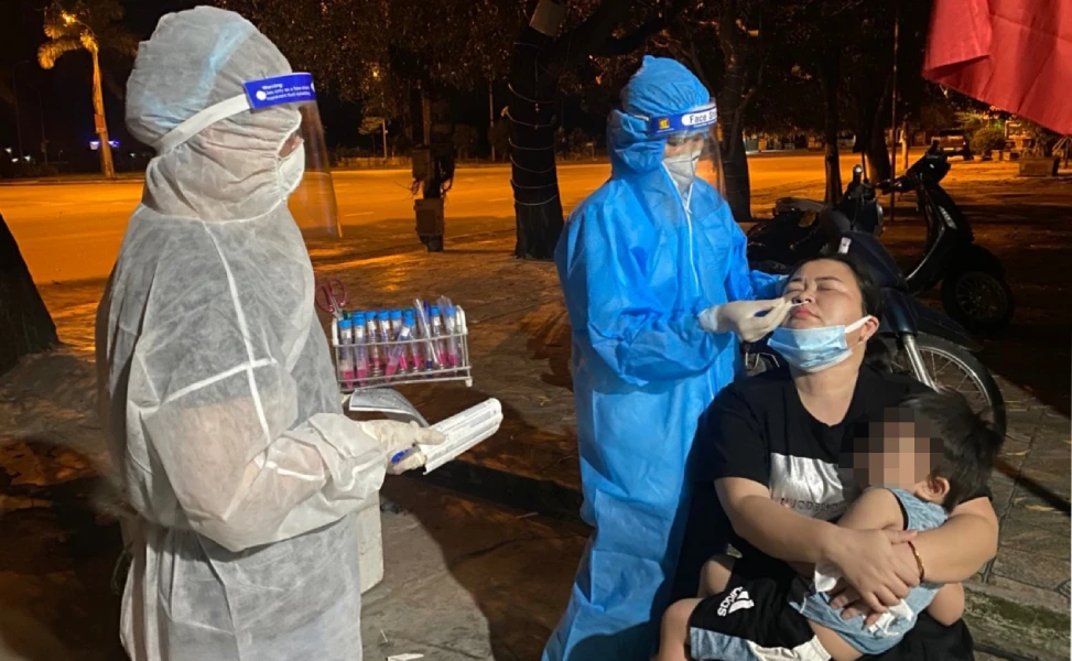 Trung tâm Kiểm soát bệnh tật tỉnh Hà Tĩnh lấy mẫu xét nghiệm cho người dân trong đêm 10-6.