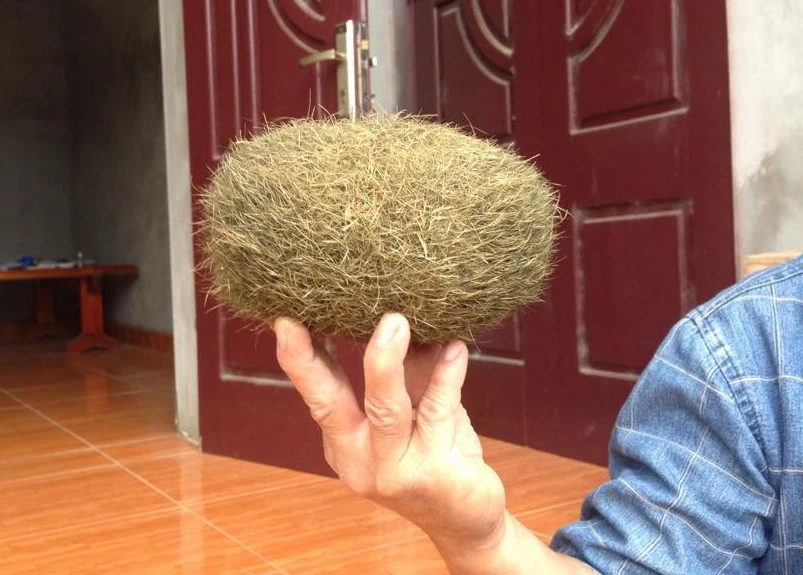 “Vật lạ” được phát hiện trong dạ dày của một con heo nái, nặng khoảng 0,9 kg. Dù đã để gần 7 tháng, “vật lạ” không hề bốc mùi hôi mà càng ngày càng vàng óng, có mùi thư thuốc bắc.