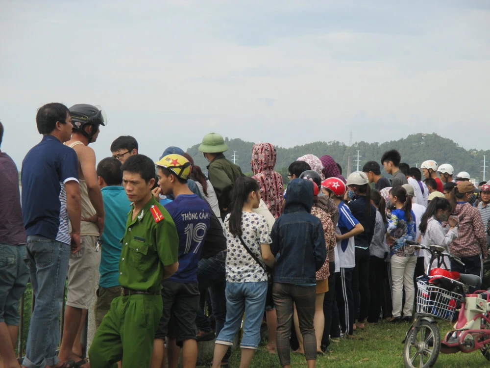 Hiện có hàng ngàn người dân và sinh viên đã ra đường ven sông Lam và bờ sông Lam để xem vớt thi thể hai nữ sinh và khám nghiệm tử thi.