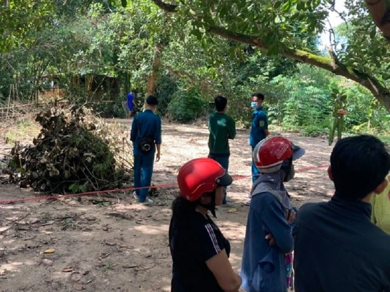 Sáng 15-9, Công an xã Xuân Thọ (huyện Xuân Lộc, Đồng Nai) đang bảo vệ hiện trường nơi phát hiện thi thể cháu TVTK. (4 tuổi, ngụ ấp Thọ Bình, xã Xuân Thọ, huyện Xuân Lộc) tại một con suối chảy qua nhà gần núi Chứa Chan cách nhà khoảng hơn 1km.