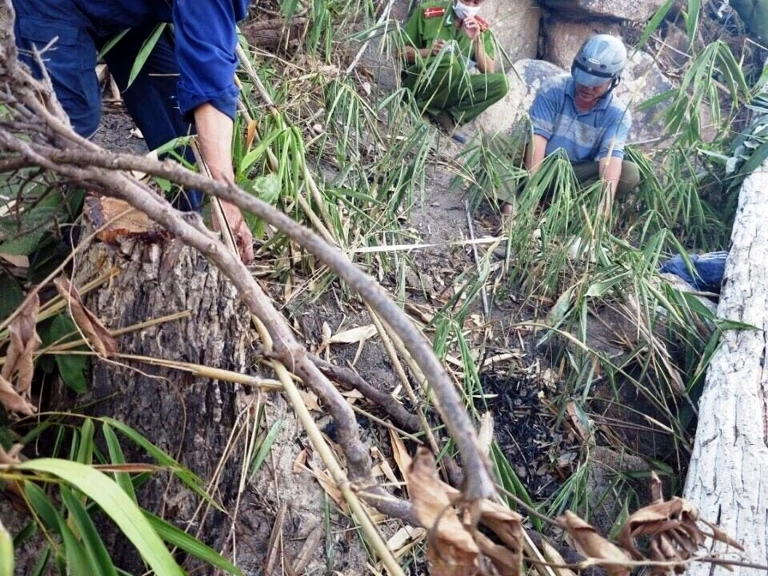 Thi thể nạn nhân là nam giới, bị một thân cây có đường kính khoảng 35-40 cm đã bị chặt ngã đè lên. Nạn nhân không có giấy tờ tùy thân, chỉ có vài vật dụng cá nhân và một chiếc bật lửa.