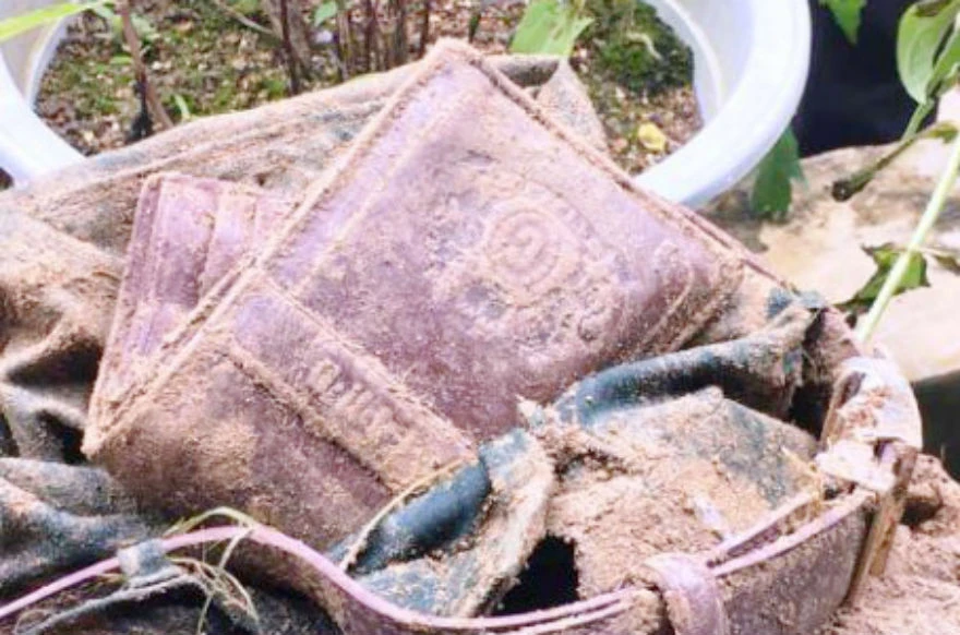 Tư trang cá nhân nghi của chiến sĩ biên phòng được phát hiện sau khi bị lũ cuốn, trôi dạt trên sông. Ảnh: H.DŨNG