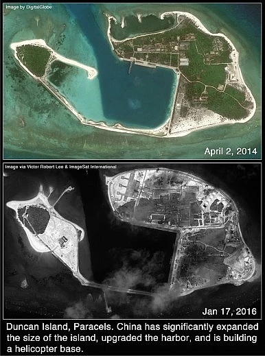 The Diplomat cho hay hình ảnh vệ tinh cho thấy việc nạo vét và bồi đắp trái phép của Trung Quốc tại hai địa điểm mới ở nhóm đảo An Vĩnh thuộc quần đảo Hoàng Sa, cách căn cứ quân sự do Trung Quốc xây dựng tại đảo Phú Lâm khoảng 15 km về phía Bắc-Đông Bắc.