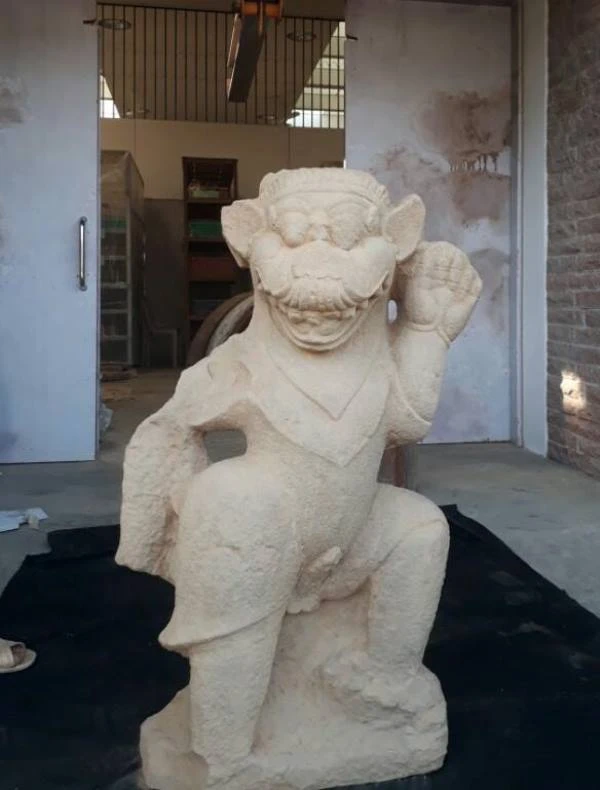 Nhiều người cho rằng đây là hai tượng sư tử, trong khi đó có một số ý kiến cho rằng đó là tượng khỉ Hanuman. Hai tượng trên có một tượng bị mất một cánh tay, tượng còn lại tương đối nguyên vẹn và có chiều cao khoảng 1,2 m.