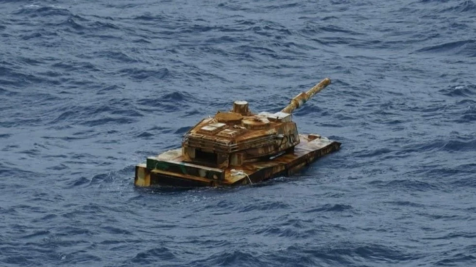 Một trong những hình ảnh cho thấy vật thể giống chiếc xe tăng nổi trên biển với tháp pháo và súng có thể dễ dàng nhìn thấy. Mặc dù vật thể có vẻ bị rỉ sét nặng nhưng một số thiết bị bên ngoài vẫn còn nguyên vẹn, bao gồm can nước ngọt dự phòng và một dây cáp.