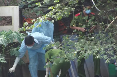 Tại hiện trường, thi thể nạn nhân là một người đàn ông khoảng 40 tuổi, mặc áo màu xanh lá cây, quần tây đen. Xác nạn nhân đang trong quá trình trương sình, bốc mùi hôi thối.