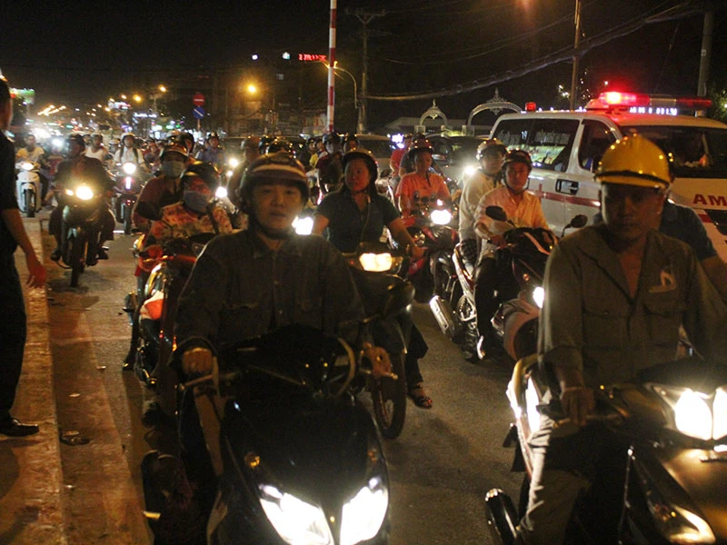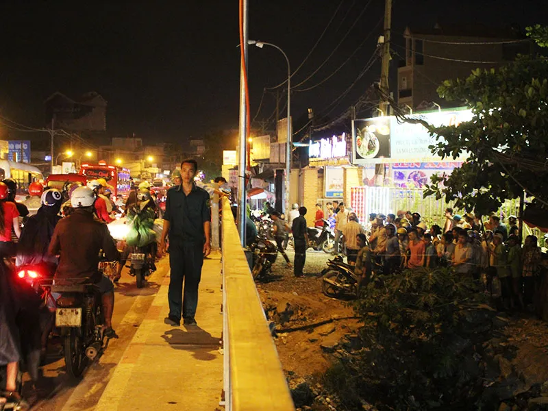 Tại hiện trường, nhiều người dân hiếu kỳ tập trung theo dõi khiến giao thông qua cầu ông Dầu bị ùn tắc.