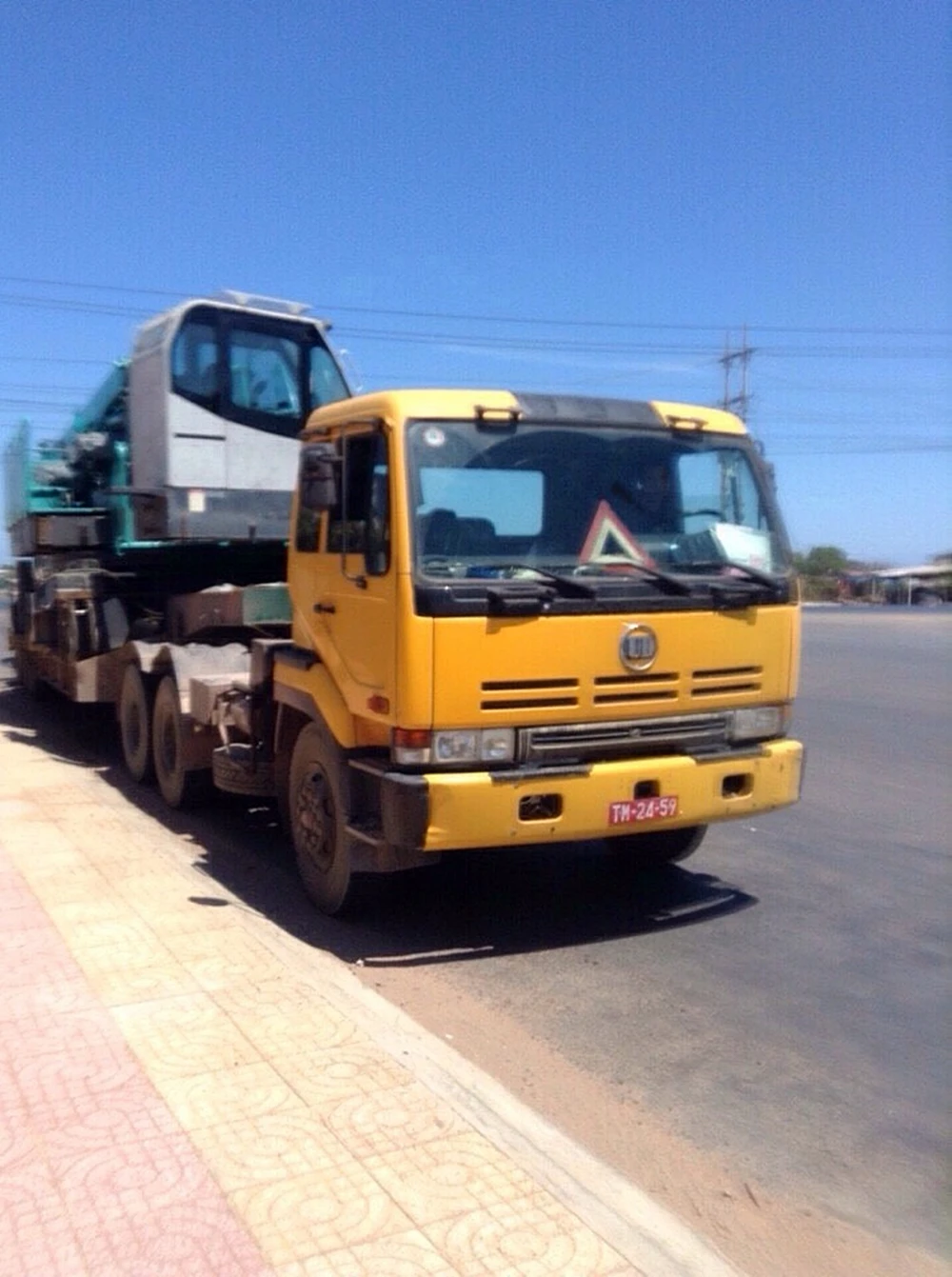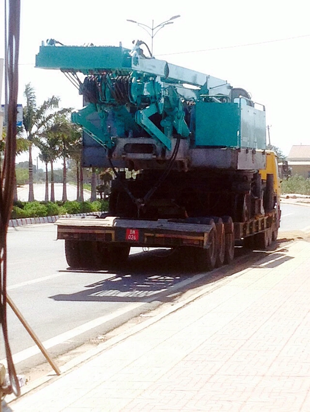 Chiều 19-4, TTGT thuộc Trạm kiểm tra tải trọng tỉnh Bình Thuận phối hợp với lực lượng kiểm soát quân sự kiểm tra xe đầu kéo mang biển số quân đội TM-2459 kéo theo sơmi rơmooc BM-026 đang chở một cần cẩu tự hành cồng kềnh lưu thông từ hướng Đồng Nai đi Ninh Thuận theo QL1.