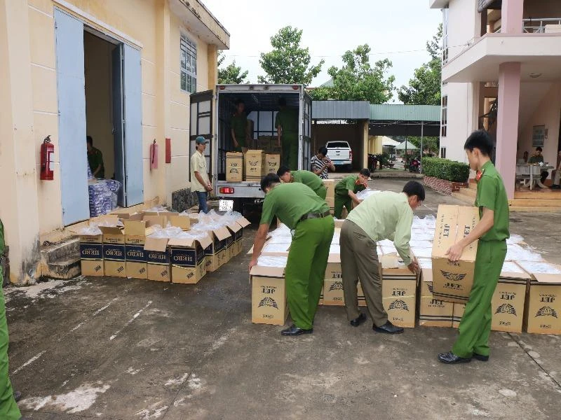 Qua kiểm đếm, số lượng thuốc lá trên xe là khoảng 60.000 bao. Quan sát, trên các bao thuốc đều không dán tem nhập khẩu theo quy định.