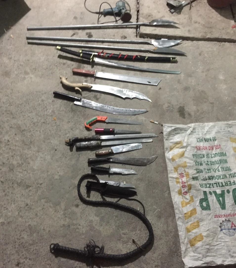 Số hung khí thu giữ tại lò sản xuất ma túy. Ảnh: Công an cung cấp