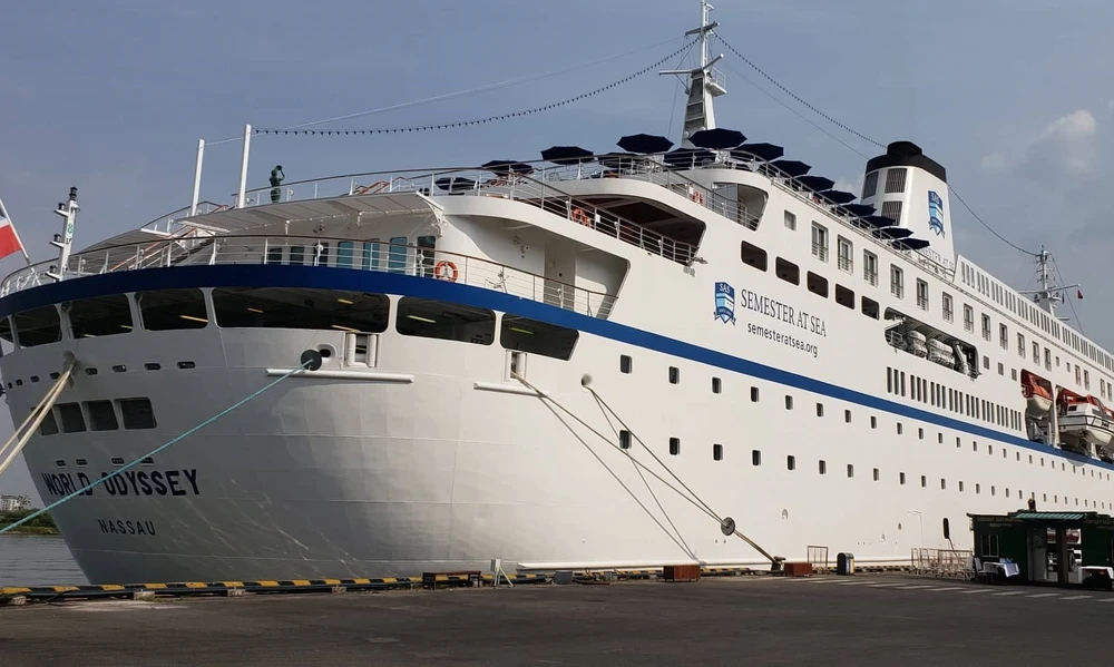 Theo ghi nhận, trưa 4-2, Tàu World Odyssey – Nassau, Quốc tịch Hoa Kỳ chở theo khoảng 700 sinh viên quốc tế và gần 200 thuyền viên tham gia học kỳ trên biển đã cập cảng Bến Nghé, quận 4.