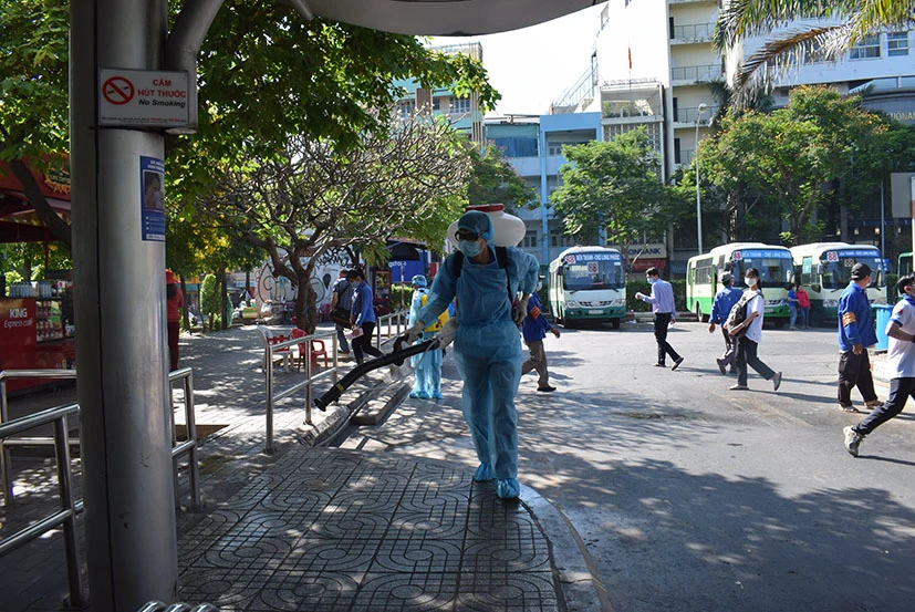 Phun khử trùng toàn bộ bến xe. Ảnh: NGUYỄN TRÀ