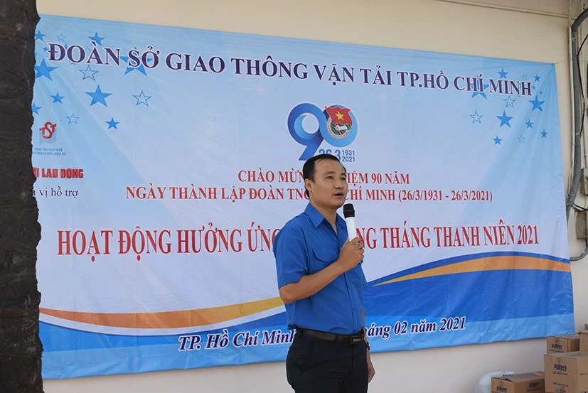 Ông Nguyễn Văn Long, Bí thư Đoàn Sở giao thông vận tải chia sẻ tại lễ ra quân. Ảnh: NGUYỄN TRÀ