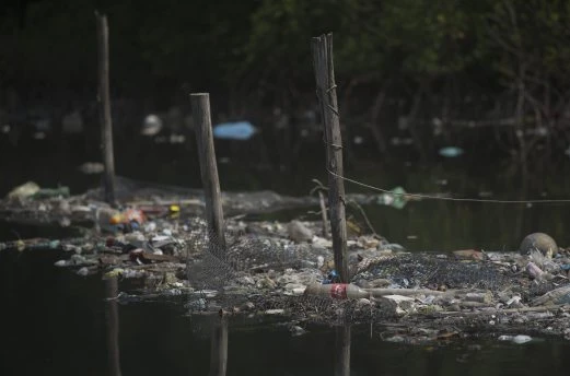 Mặt nước vịnh Guanabana với nguồn nước ô nhiễm đầy rác thải