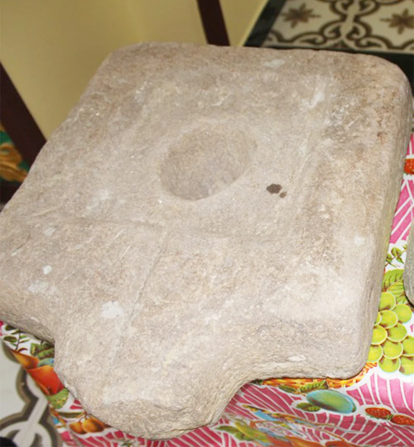 Đến nơi, xe trút gia hạ xuống đất thì ông thấy một khối đá hình vuông vức, chính giữa lại có cái lỗ tròn. Nghi ngờ là vật cổ nên ông Dũng bảo tài xế cùng mình khuân vật ấy lên xe chở về lại đình làng.