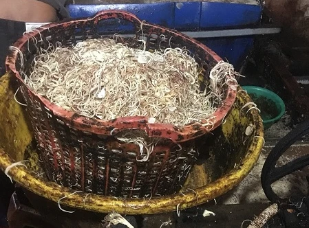 Bắp chuối bào ngâm hóa chất tại cơ sở bà Cầm. Ảnh: BAN QUẢN LÝ ATTP TP.HCM
