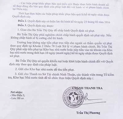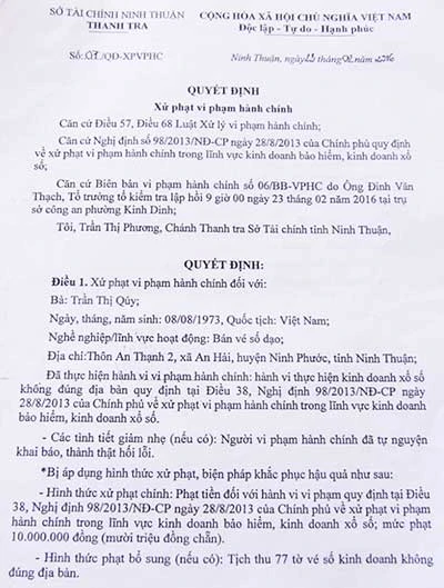 Quyết định xử phạt người bán vé số dạo. Ảnh: Báo THANH NIÊN